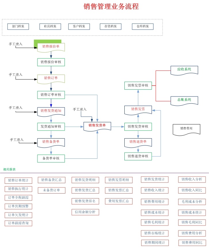 销售管理系统可通过不同阶段的管理需求定义为企业现行和将来的销售模式提供不同的解决方案。通过客户档案、市场信息的收集,反映出市场的需求情况。销售订单管理,将订单管理纳入规范化的管理轨道,使用户能了解公司订单的执行情况,并根据所订合同(订单)编制出销售计划、生产计划、发货计划,并通过对公司销售情况的登记,反映出公司销售产品结构的状况。销售分析可用来监督反映销售人员在获得利润方面的效果和效率,提高产品的销售透明度,并按销售额、利润或数量来进行产品分级。销售管理系统包含销售报价管理、销售订单、销售开票、销售发货、销售报表、销售分析等功能,能够处理统一销售、独立销售的销售方式并支持销售与库存管理、应收管理完整结合在一起,提供有效的会计管理;积极支持销售业务活动,快速客户订单处理和准时的客户订单发货;销售管理系统帮助企业通过实时的、综合的客户订单信息,改善客户服务质量。对客户的信用状况进行有效的分析,以达到减少坏帐的目的。销售管理系统能够帮助企业各级管理人员实时了解客户订单情况,产品受订情况,及时了解产品受订金额,企业可以从产品受订情况指导企业生产计划制定和排产;可以帮助企业及时了解产品热点,畅销产品、滞销产品,及时了解产品预期的毛利润,通过畅销和滞销产品趋势分析,指导和影响企业的产品研发和制造策略。