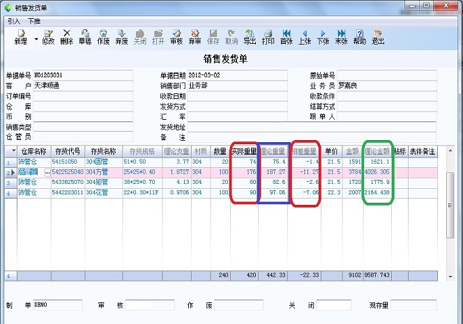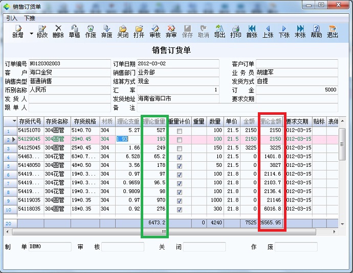 2. 客户通常按支数订货,[理论重量]可以反映出客户的订货重量
