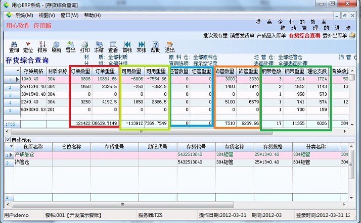 1.功能强大,方便,同一张表格可以同时反映订单,饰管,坯管,钢带等数据