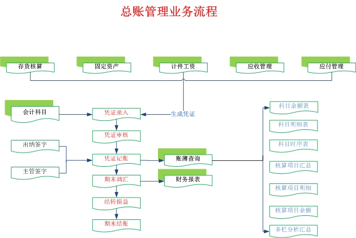 总账是指总分类账簿也称总分类账。是根据总分类科目开设账户,用来登记全部经济业务,进行总分类核算,提供总括核算资料的分类账簿。总分类账所提供的核算资料,是编制会计报表的主要依据,任何单位都必须设置总分类账。实现公司、业务领域和会计科目表有机地集成在一起提供凭证管理、账簿管理、期末结账等账务处理的基本功能,同时提供业务处理及时产生凭证的功能,实现财务业务一体化管理,保障财务信息与业务信息的高度同步与一致性,为企业决策层提供实时的关键绩效指标执行情况